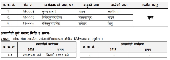लोकसेवा मध्यपश्चिम : आयुर्वेद सहायक, फार्मेसी, ल्याव, फिजियोथेरापीको लिखित नतिजा प्रकाशित