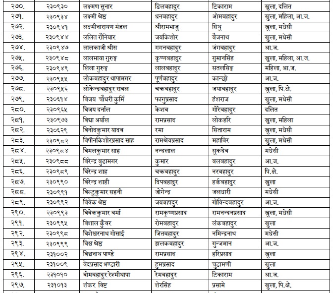 काठमाडौँ, २० भदौ – लोकसेवा आयोग पश्चिमाञ्चल क्षेत्रीय निर्देशनालय पोखराले गत गत जेठमा लिएको हेल्थ असिष्टेन्ट (एचए) पाँचौ तहको खुल्ला तथा आन्तरिक प्रतिस्पर्धाको लिखित परीक्षाको नतिजा प्रकाशित गरेको छ ।