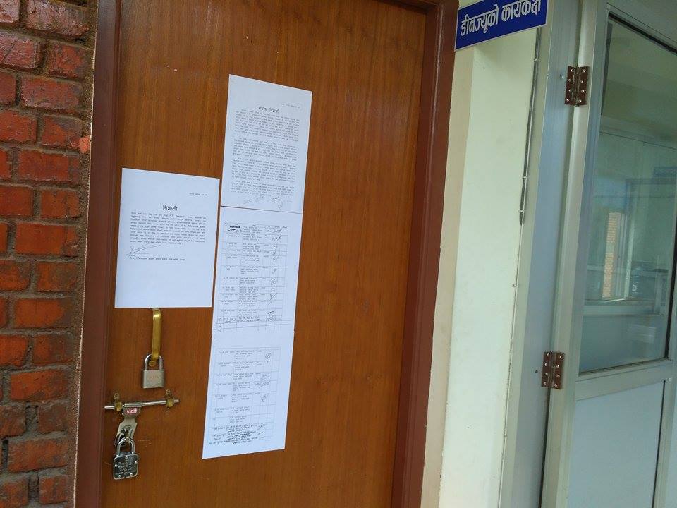 डीनको कार्याकक्षमा लगाइएको प्राध्यापकहरुको ताला