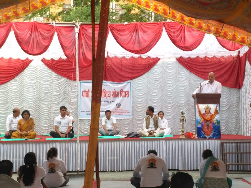 काठमाडौँ, ६ असार । अन्तराष्ट्रिय योग दिवसको अवसरमा आज स्वास्थ्य तथा जनसंख्या मन्त्रालय परिसरमा योग शिविरको आयोजना गरिएको छ ।