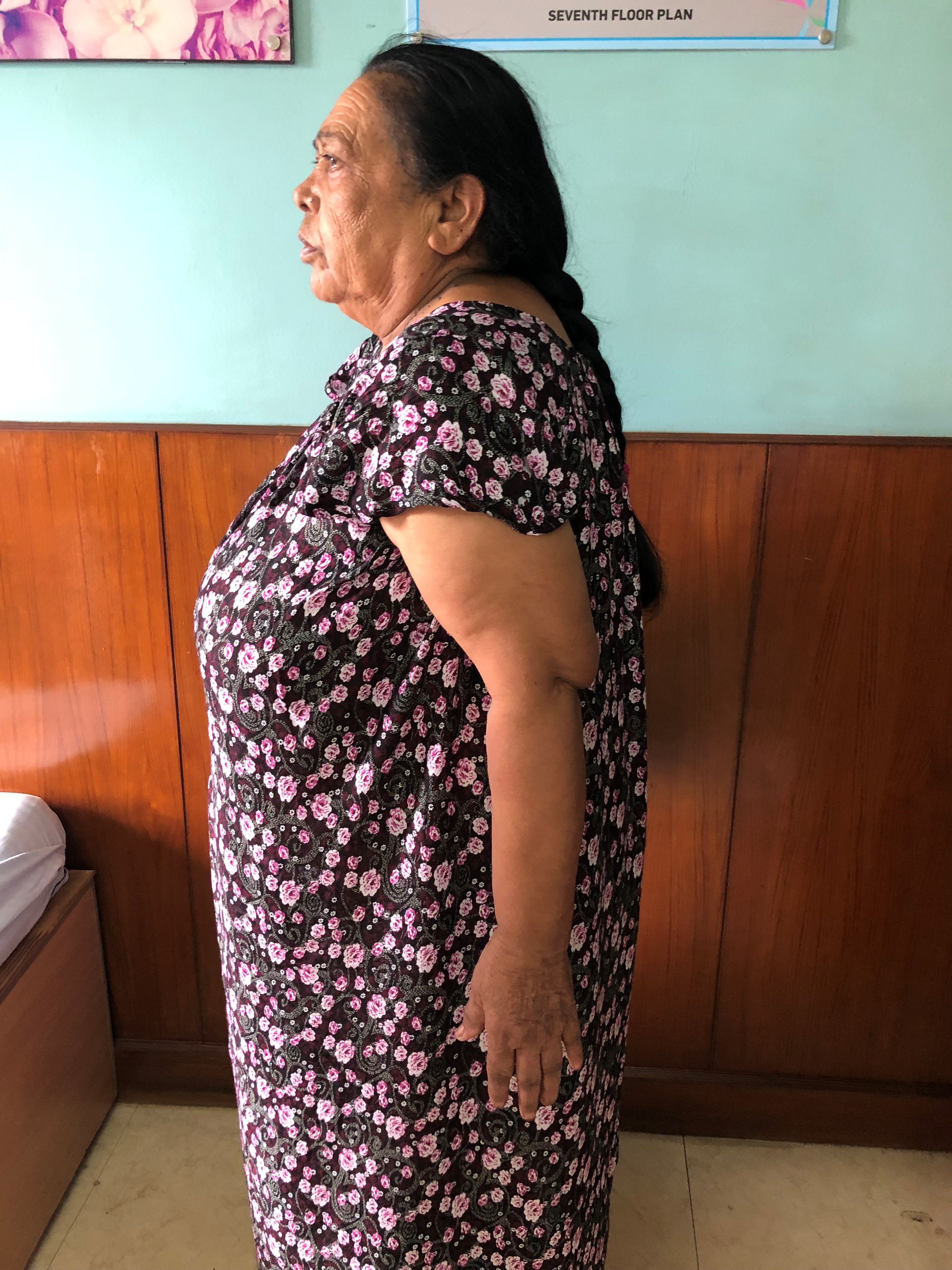 इमाडोल निवासी ६५ बर्षीया श्रीमती अञ्जु बुढाथोकी विगत लामो समयदेखि मोटोपनको समस्याबाट पीडित थिइन । डिह्डुल गर्न गाह्रो, रक्तचाप बढेर १६०/९० भन्दा तल नझर्ने समस्या, अलिकति हिड्दा पनि स्वाँ स्वाँ हुने समस्या त छँदै थियो, त्यसमाथि राति निन्द्रा नपर्ने समस्याले बढी नै सताएको थियो । राति तारान्तार पिसाव फेर्न गइरहनुपर्ने अर्को समस्या पनि थियो ।