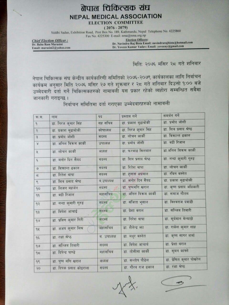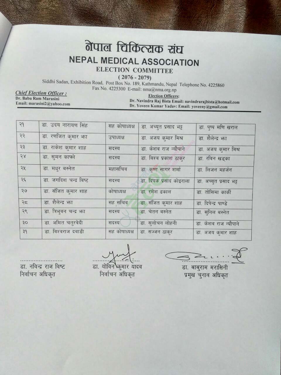 चिकित्सक संघको निर्वाचनमा ३१ जनाको उम्मेद्धारी (सूची सहित)