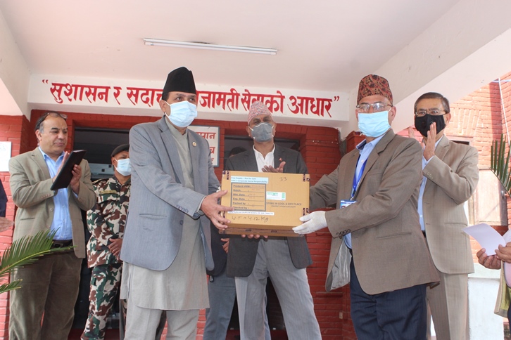 आइतबार मन्त्रालयमा देउराली जनता फर्मास्यूटिकल्स प्रालिका तर्फबाट प्राप्त एक लाख ५० हजार थान हाइड्रोक्सीक्लोरोक्वाइन सल्फेट ट्याब्लेट बुझ्दै मन्त्री ढकालले भोलिका दिनमा नेपालमा चाहिने अत्यावश्यक औषधिहरूमा आत्मनिर्भर हुन सकियोस भन्नेर काम गर्नुपर्ने बताए ।