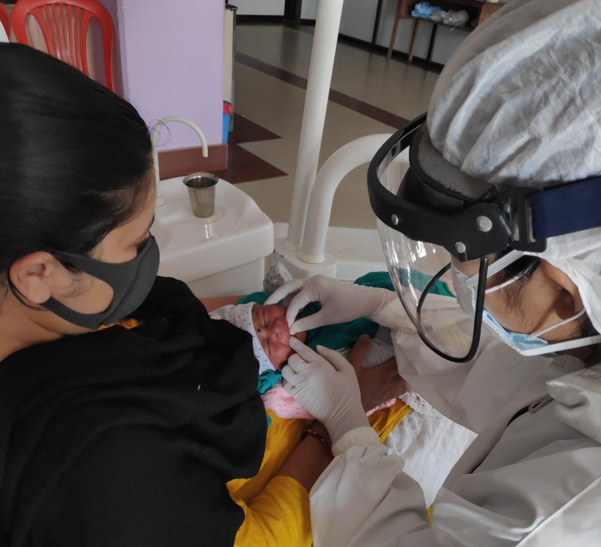 केडिसीमा डेन्टल सर्जन डा रक्षा श्रेष्ठले नवजात शिशुको दाँत निकालिदिएकी हुन् ।
