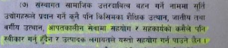 तर, सूर्तिजन्य पदार्थ नियन्त्रण तथा नियमन निर्देशिका २०७१ को परिच्छेद ३ दफा २२ को उपदफा ७ मा त्यसरी डोनेसन लिन दिन नमिल्ने स्पष्ट व्यवस्था छ । सो उपदफामा लेखिएको छ, ‘संस्थागत सामाजिक उत्तरदायित्व बहन गर्ने नाममा सूर्ति उद्योगहरुले प्रदान गर्ने कुनै पनि किसिमका शैक्षिक उत्थान, जातीय तथा बर्गीय उत्थान, आपतकालिन सेवामा सहयोग र सहकार्यको कसैले पनि स्वीकार गर्नु हुँदैन र उत्पादक लगायतले यस्तो सहयोग गर्न पाउने छैन् ।’