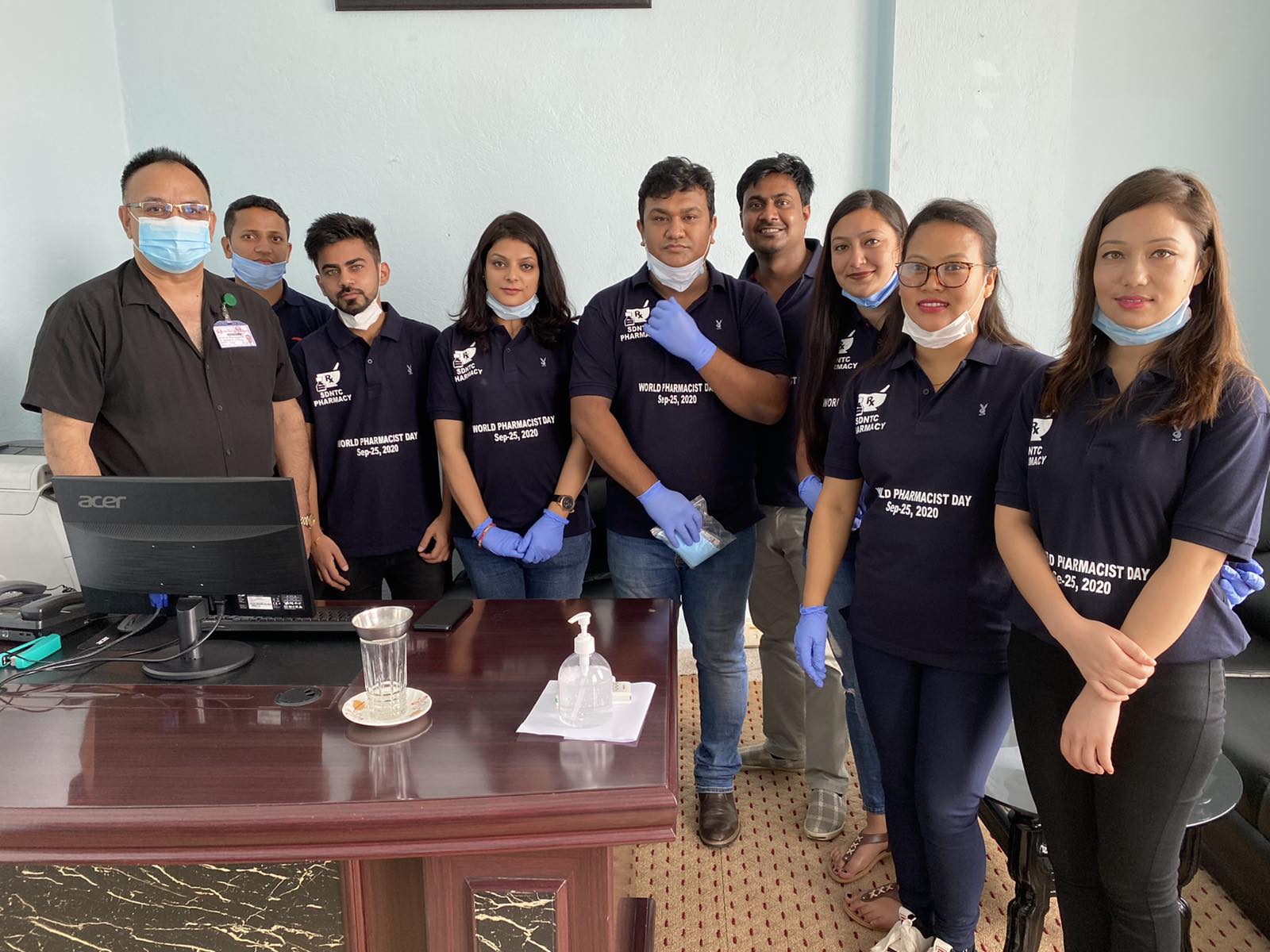 यसैबीच भक्तपुरस्थित शहीद धर्मभक्त राष्ट्रिय प्रत्यारोपण केन्द्र फार्मेसी शाखाले विश्व फर्मासिस्ट दिवसको सन्दर्भमा पारेर अस्पताल परिसर आउने विरामी, तिनका आफन्त र आम सर्वसाधारणलाई निशुल्क मास्क, स्यानिटाइजर तथा सिटामोल औषधि वितरण गरेको छ ।