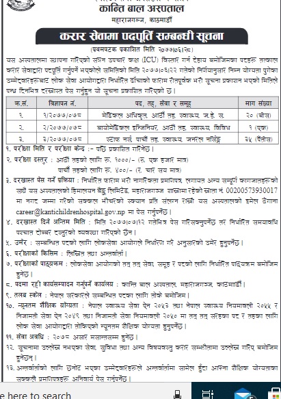 कान्ति बाल अस्पतालमा २० जना डाक्टर र ३५ जना नर्सका लागि जागिरको अवसर