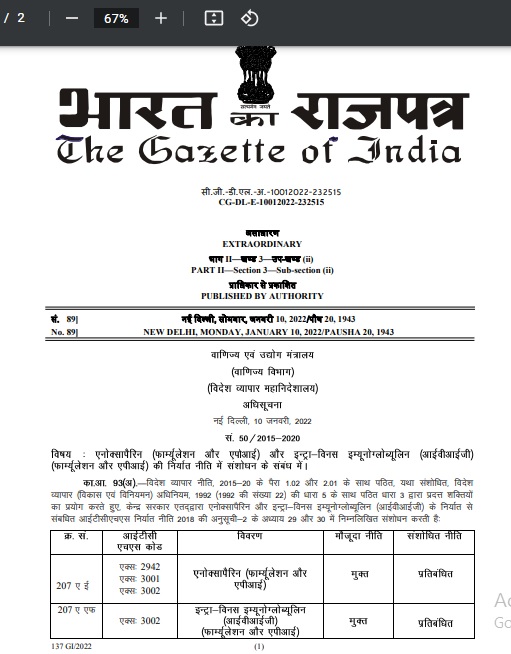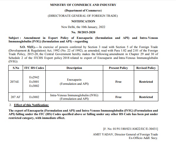 निर्यात प्रतिवन्ध लगाइएको जानकारी १० जनवरीमा प्रकाशित भारतको राजपत्रमा समेत उल्लेख छ ।