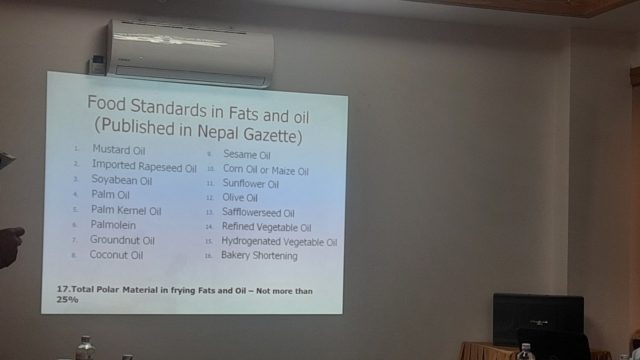 कार्यक्रममा खाद्य प्रविधि तथा गुणनियन्त्रण विभागका प्रवक्ता मोहनकृष्ण महर्जनले खाद्य सुरक्षाका लागि विभागले गर्दै आएका कामबारे जानकारी दिए । उनले कसरी खाना पकाउने र कसरी खाने भन्ने कुरा महत्वपूर्ण रहेको भन्दै विभागले बजारमा ट्रान्सफ्याटयुक्त खानेकुराबारेमा अनुगमन गरिरहेको बताए । उनले व्यक्ति आफै पनि सचेत हुन आग्रह गरे ।