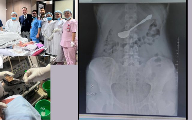 पेटमा अड्किएको चम्चा नर्भिकका चिकित्सकले बिनाशल्यक्रिया निकाले