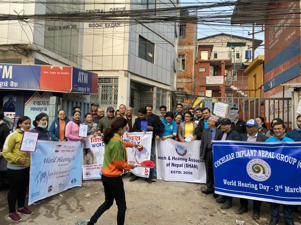 कार्यक्रम अघि सोसाइटीले विश्व श्रवण दिवसको अवसरमा बहिरोपन सम्वन्धी जनचेतना फैलाउन भन्दै प्रभातफेरीको आयोजना गरेको थियो । प्रदर्शनीमार्ग तथा भृकुटीमण्डप क्षेत्रमा आयोजना गरिएको प्रभातफेरीमा चिकित्सकहरुले विभिन्न सन्देश लेखिएका प्लेकार्ड तथा व्यानर प्रदर्शन गरेका थिए ।