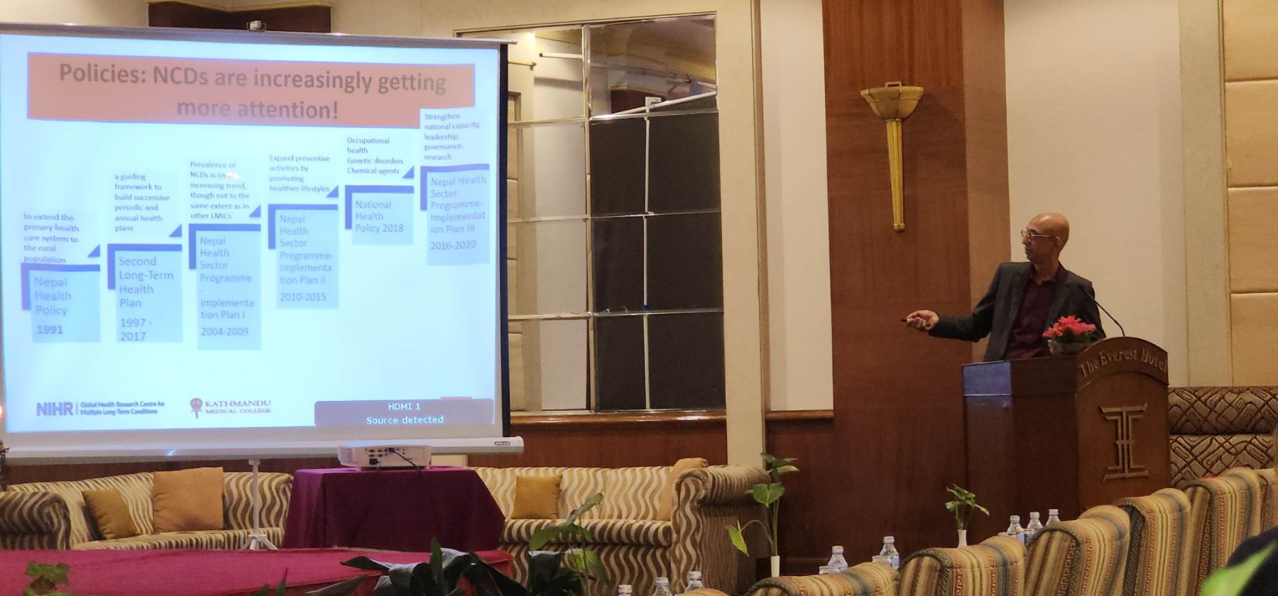 ‘एउटा भन्दा बढी रोगहरुको एउटै व्यक्तिमा एक भन्दा बढी रोगहरुको हुँदा त्यसको असर के ? आर्थिक भार बढी, उपचारको पहुँचमा समस्या, विभिन्न विशेषज्ञहरुलाई भेटनुपर्ने, एउटा र एउटा भन्दा बढी रोग हुँदा आर्थिक भार र समस्याको हिसावले पक्कै पनि बढी नै हुन्छ । यसलाई एड्रेस गर्नका लागि एनआईएचआर, युकेको राष्ट्रिय फन्डिङ एजेन्सी हो । त्यसको सहयोगमा हामीले नेपाल र भारतमा यो अनुसन्धानलाई अघि बढाएका छौँ,’ डा वैद्यले भने ।