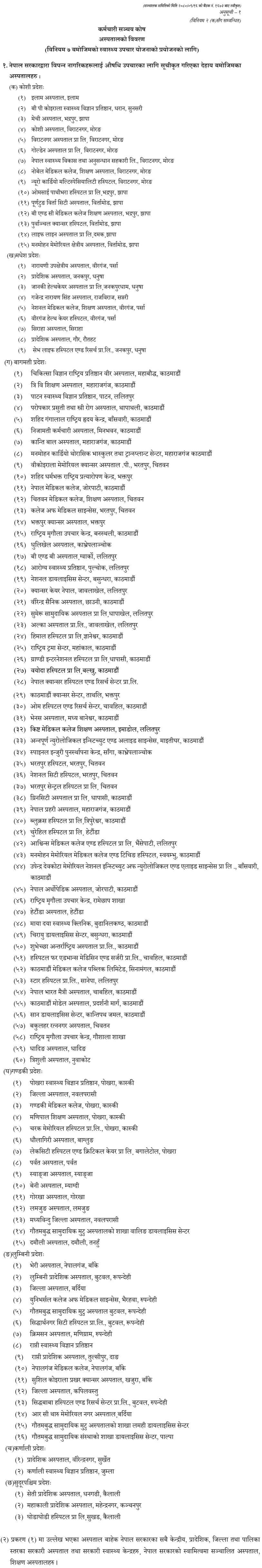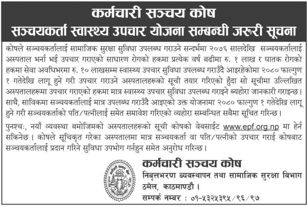 सञ्चय कोषमा आवद्ध कर्मचारीले अब सूचीकृत अस्पतालबाट मात्रै उपचार सुविधा पाउने