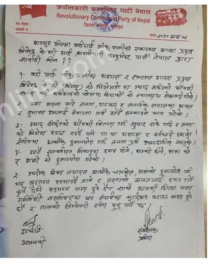 जनतालाई धम्की दिने, दवाव दिने र सत्ता र शक्तिको दुरुपयोग गरेका कारण क्रान्तिकारी पार्टीले कारबाही गरेको जनाएको छ ।