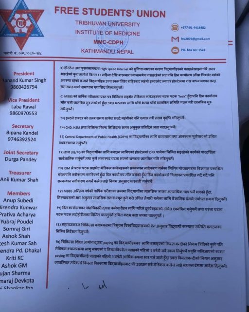 मागमा डीन कार्यालयले एकल ढंगले संस्थानलाई चलाउन खोजेको, क्याम्पस प्रशासनले विद्यार्थीका सामान्य माग समेत पुरा नगरेको, होस्टेलको अवस्था सुधार नभएको लगायतका असन्तुष्टि राखिएको छ । आन्दोलनमा आवासीय, इन्टर्नसीप, फार्मेसी लगायतका विद्यार्थीको साथ रहेको छ ।