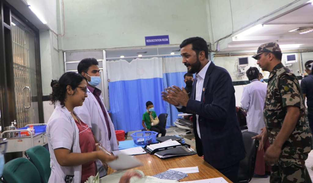 काठमाडौँ, ९ जेठ । गत साता स्वास्थ्य मन्त्रीमा नियुक्त प्रदीप यादवले स्वास्थ्य संस्थाहरुको स्थलगत अनुगमनमा निस्किएका छन् । आज दिउसो उनी महावौद्यस्थित वीर अस्पताल र राष्ट्रिय ट्रमा सेन्टरको अनुगमन गरेका हुन् । दिउँसो १ बजे मन्त्री यादवसंग सचिव डा रोशन पोखरेलको नेतृत्वमा स्वास्थ्य अधिकारीहरु सहभागी थिए ।