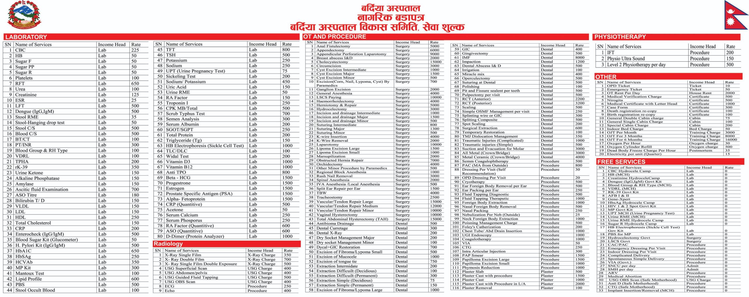 प्रदेश अन्तर्गतका १४ वटा अस्पतालमा राखिएको नागरिक बडा पत्रमा आफू कहाँ हुने सेवा, लाग्ने खर्च र सेवा दिईने समय समेत उल्लेख गरिएको छ ।
