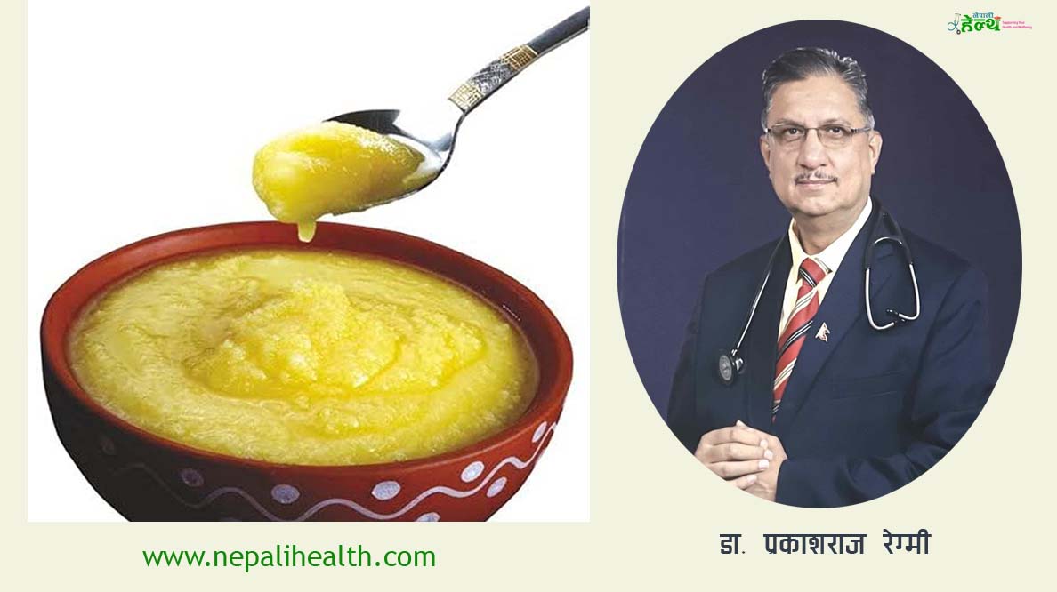 वास्तवमा स्वस्थ मानिसले मात्र होइन उच्च रक्तचाप, मधुमेह, मुटुरोगी, मिर्गौलारोगी आदिले समेत विचार पुऱ्याएर खाने हो भने घिउ खान कति पनि डराउनुपर्दैन ।
