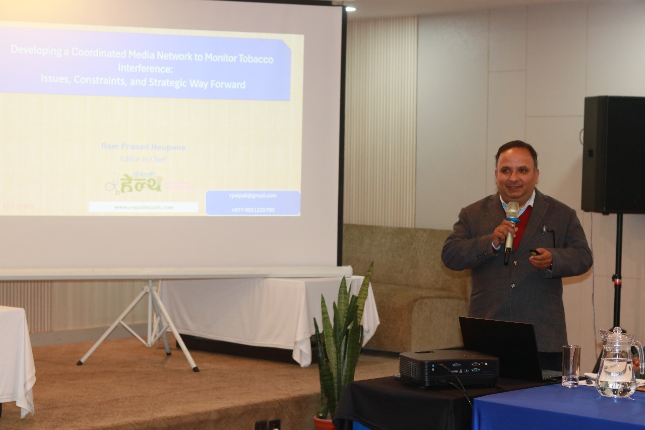 स्वास्थ्य पत्रकार रामप्रसाद न्यौपानेले सुर्ती उद्योगको हस्तक्षेपविरुद्ध नेपाली सञ्चारमाध्यम र सञ्चारकर्मीहरुले निरन्तर खवरदारी गरेको भन्दै अहिलेको अवस्थामा थप चनाखो भएर बस्नु पर्ने बताए ।