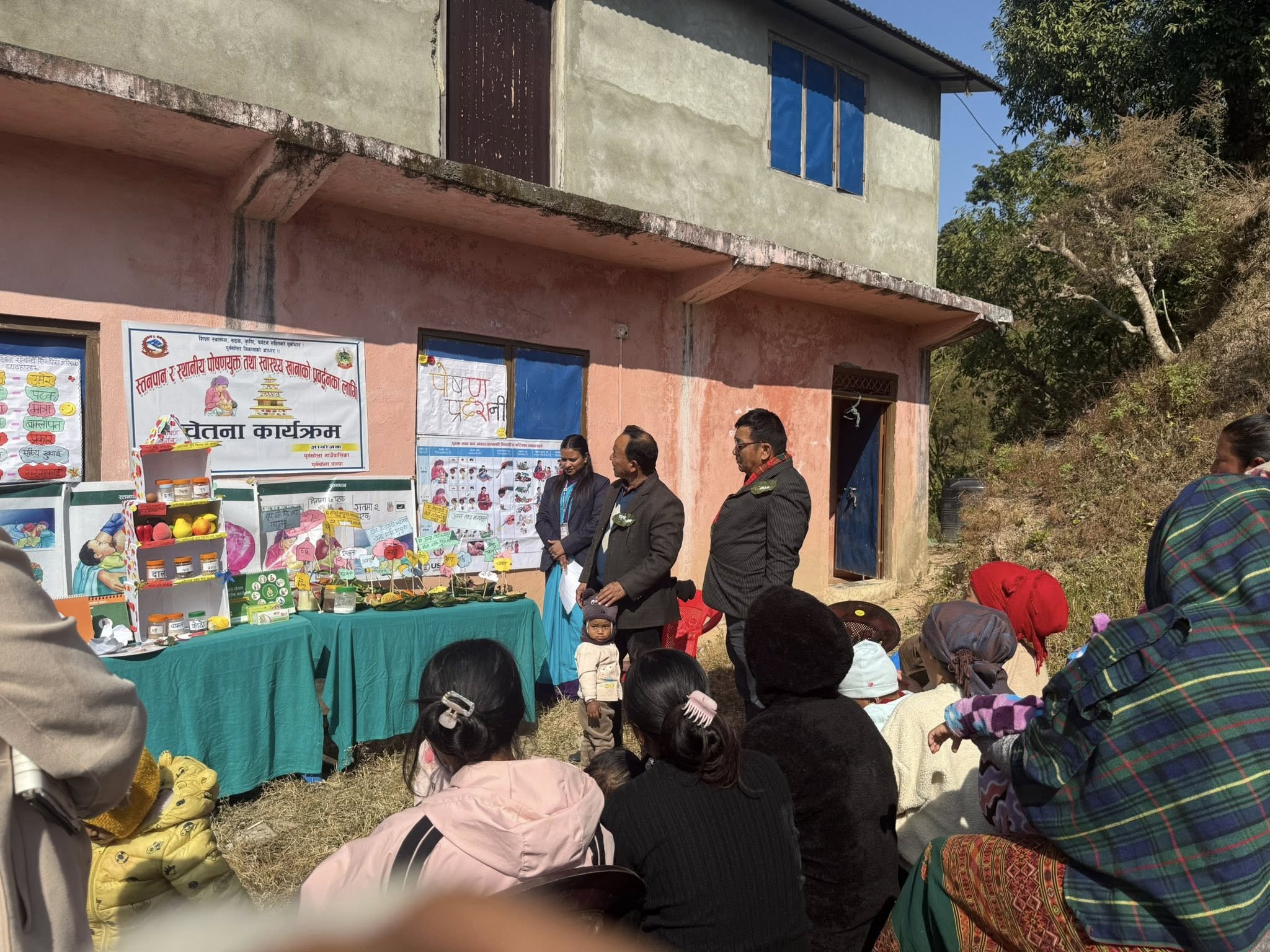 पोषण कार्यक्रम अन्तर्गतको सो सचेतना कार्यक्रमका स्थानीय गर्भवती तथा सुत्केरी महिलाहरु तथा अगुवाहरुको उपस्थिति थियो । सो अवसरमा वीरकोट स्वास्थ्य चौकी प्रमुख प्रियाकुमारी साहले कार्यक्रमको उदेश्यबारे बताएकी थिईन ।