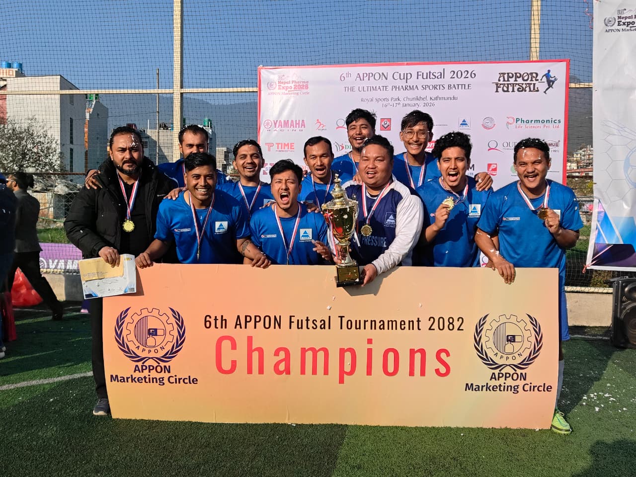 काठमाडौँ, ३ माघ । ‘डिफेन्डिङ च्याम्पियन’ एशियन फर्मास्युटिकल्स छैटौँ एपोन फुटसल प्रतियोगिता – २०८२ को पनि उपाधी हात पारेको छ ।