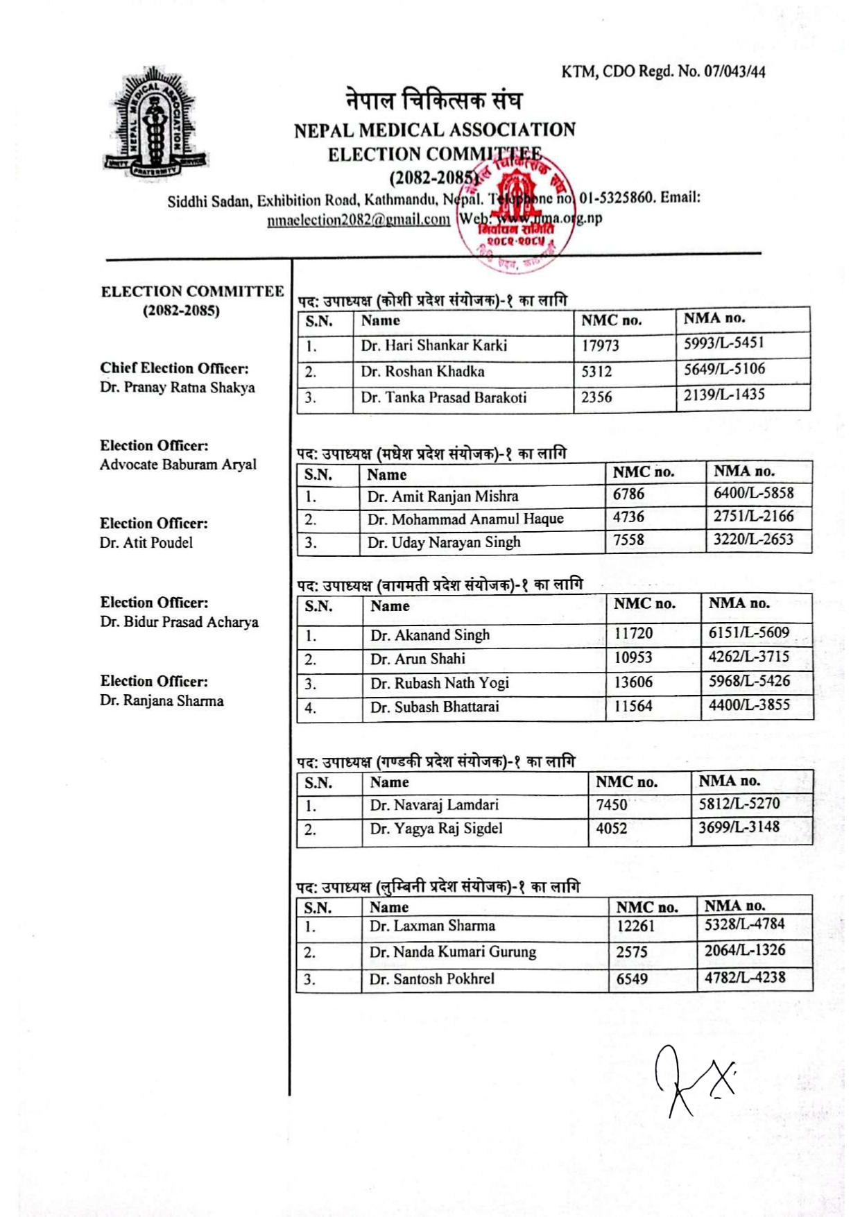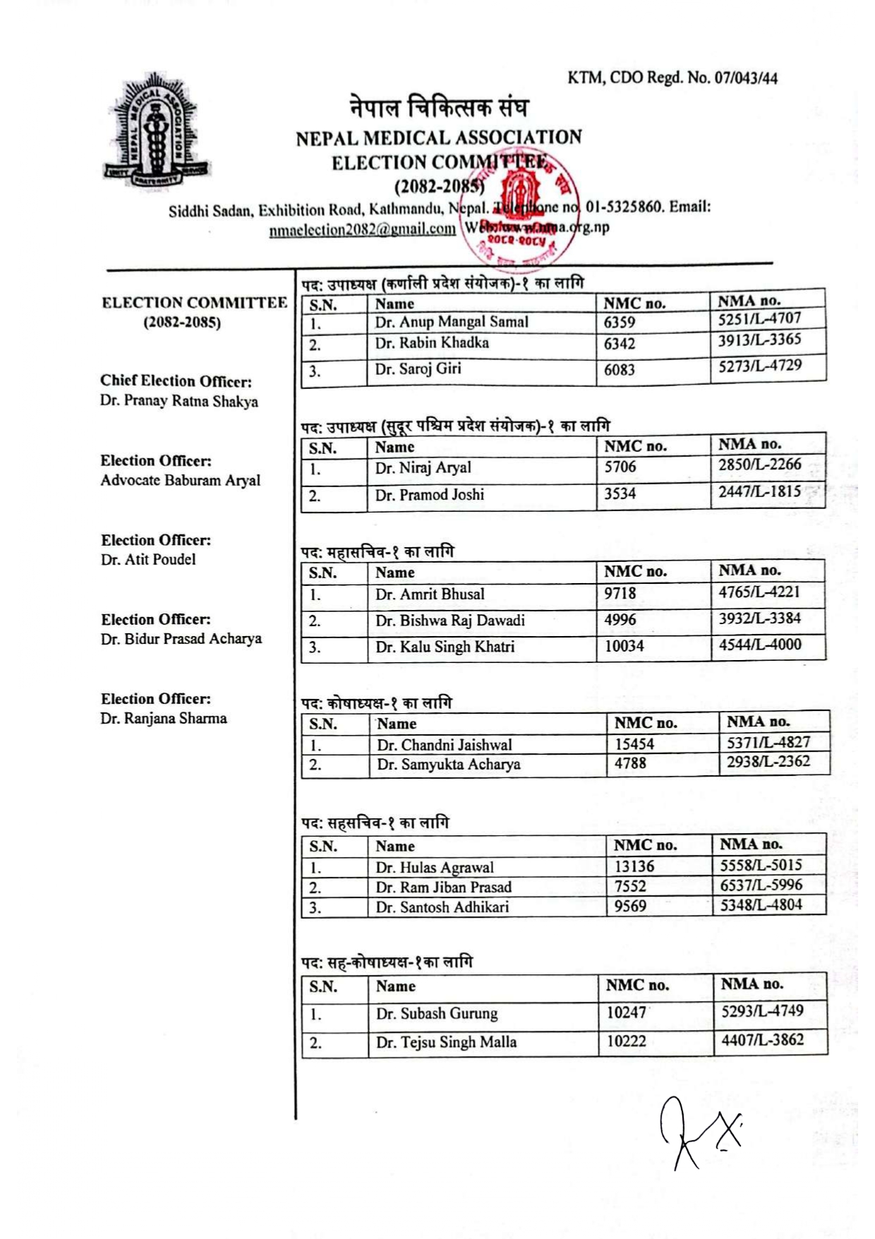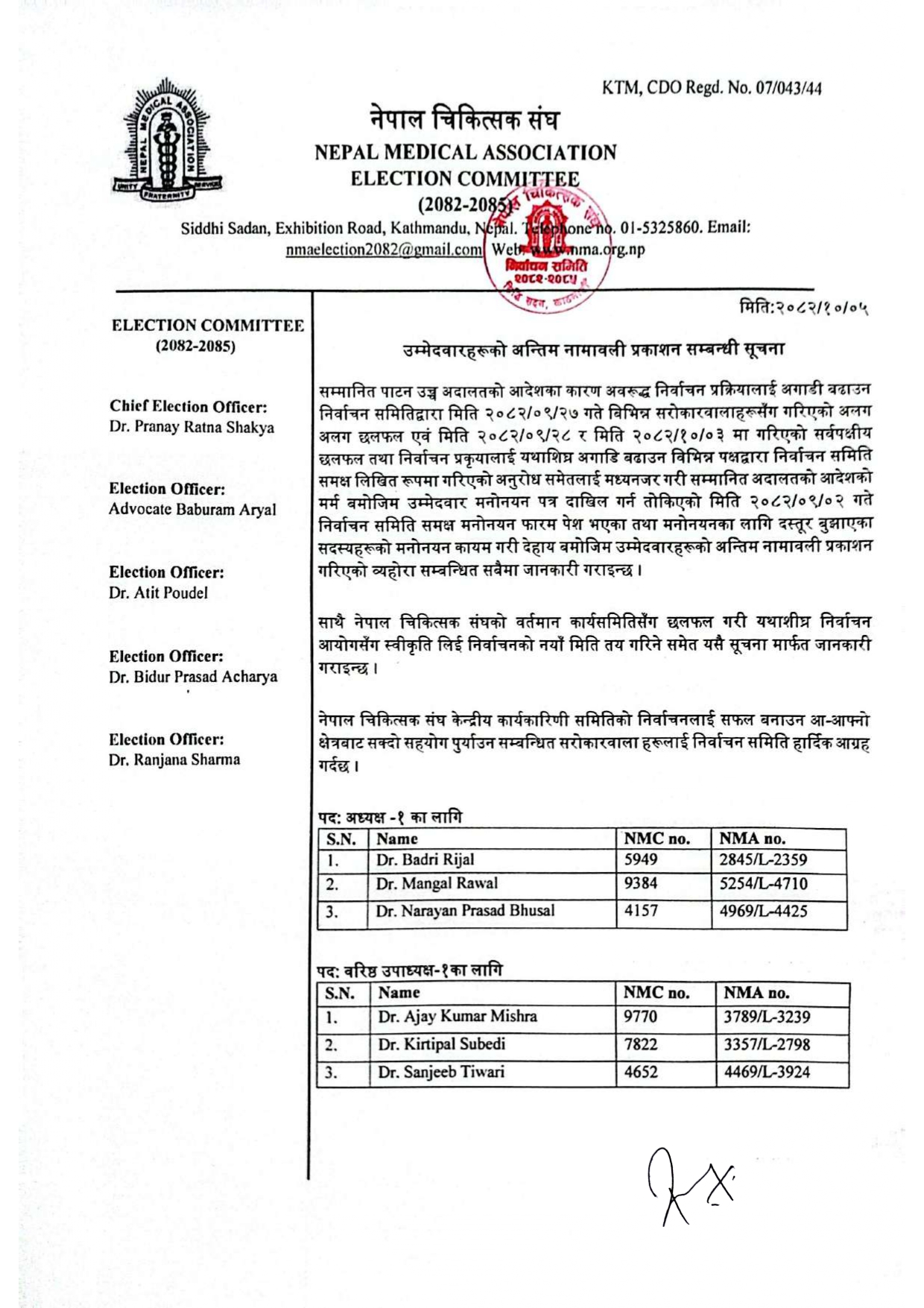 निर्वाचन समितिले मंगलबार राती उम्मेदवारहरुको अन्तिम नामावली प्रकाशन गर्दै यसअघि रद्ध भएका भनिएका चिकित्सकहरुको नाम समेत कायम गरेको छ ।