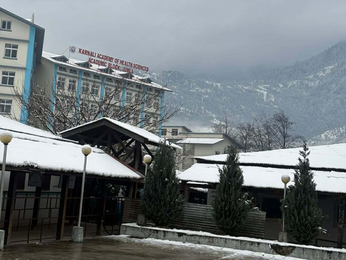 हिउको घुम्टो ओढेको कर्णाली स्वास्थ्य विज्ञान प्रतिष्ठान जुम्ला (फोटो फिचर)