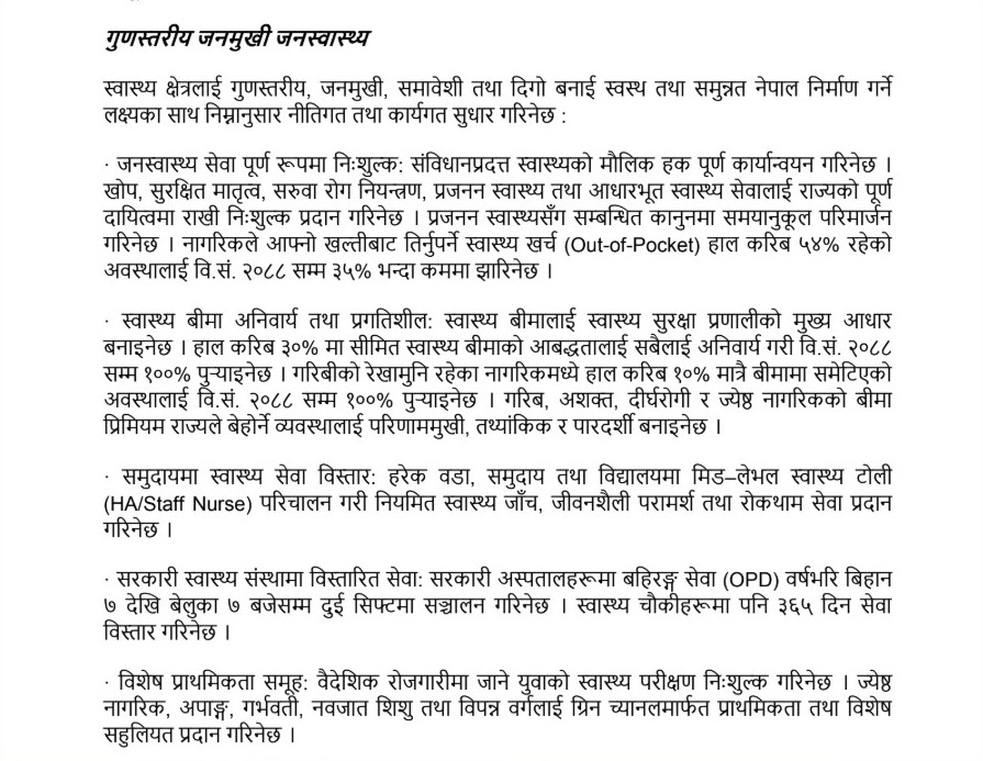 हेर्नुहोस नेकपाले आफ्नो चुनावी प्रतिवद्धता पत्रमा समेटेको स्वास्थ्यको विषयहरु: