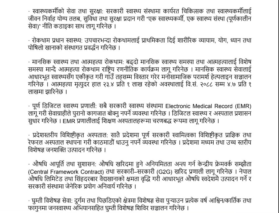 यी हुन् नेपाली कम्युनिष्ट पार्टीको चुनावी प्रतिवद्धता पत्रमा अटाएको स्वास्थ्यका २९ बुँदा