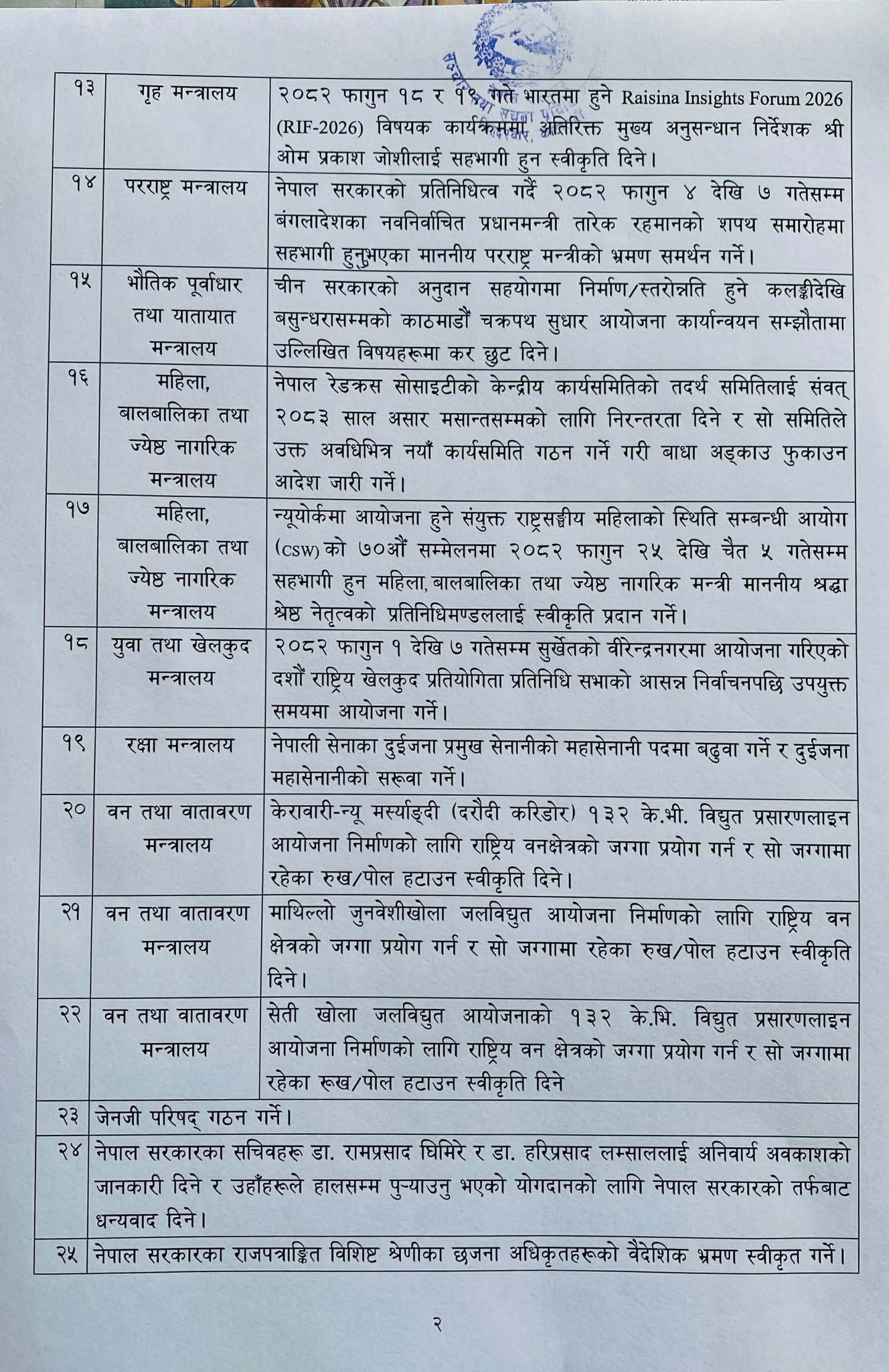यस्ता छन् मंगलबारको मन्त्रिपरिषद्को बैठकले गरेको २५ निर्णय: