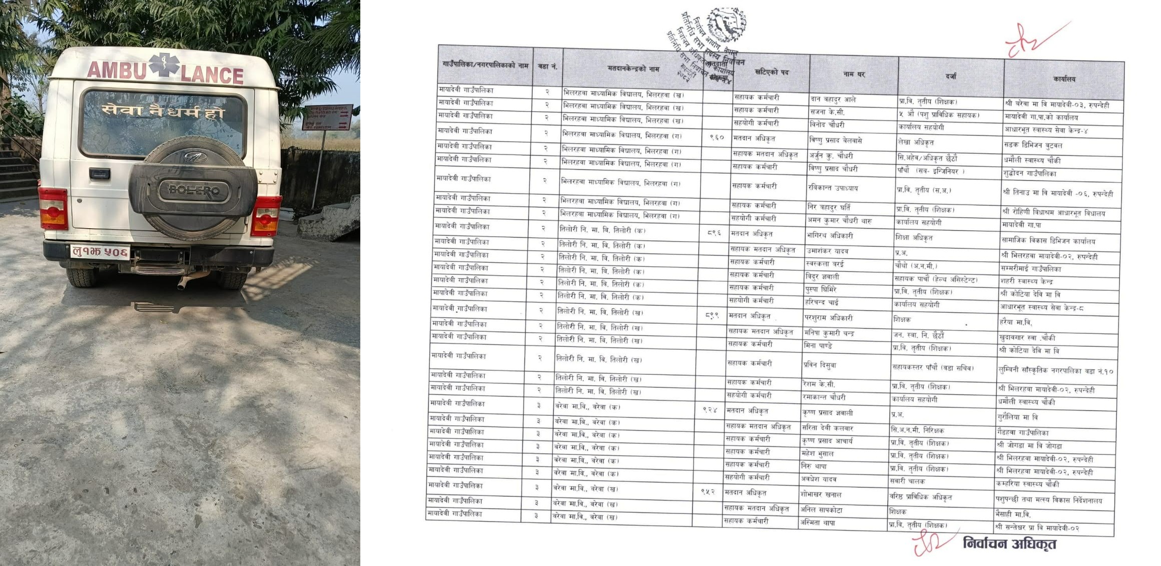 गाउँपालिकाका प्रमुख प्रशासकीय अधिकृत लेखनाथ पोखरेलले एम्बुलेन्स चालक यादवलाई चुनावमा खटाउने निर्णय गरेका हुन् ।