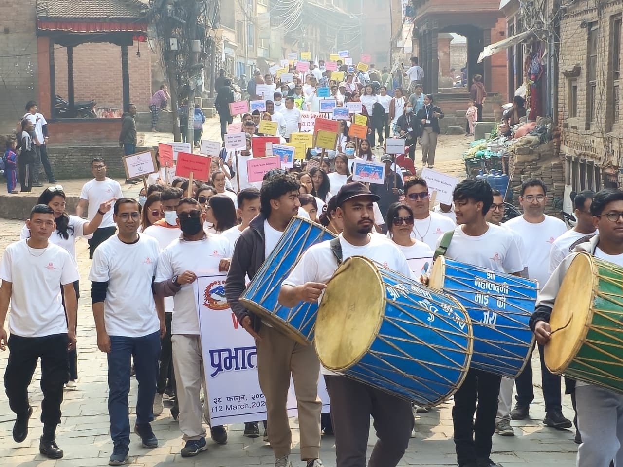 धिमे बाजा, ब्यानर र प्ले कार्ड समेतको पदयात्रा केन्द्रबाट शुरु भइ नपुखु हुँदै भक्तपुर दरवार स्क्वायर – साकोठा – टौमडी – पोटरी स्क्वायर – नासमना – बंशगोपाल – तेखापुखु – भार्वाचो – भक्तपुर मिनि बस पार्क हुँदै पुनः शहीद धर्मभक्त राष्ट्रिय प्रत्यारोपण केन्द्रमा आई सम्पन्न भएको थियो ।