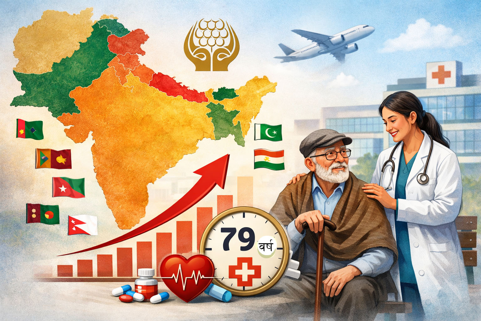 सार्कको सबैभन्दा ठूलो देश भारतमा औसत आयु ७० वर्ष रहेको छ ।
