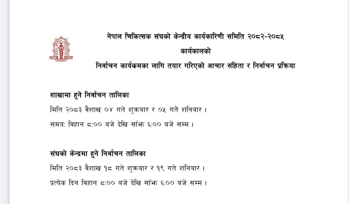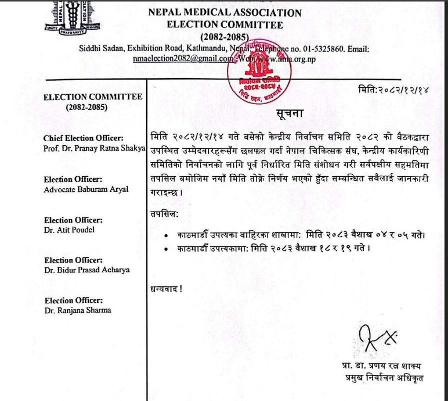नेपाल चिकित्सक संघको निर्वाचनका लागि फेरी नयाँ मिति तोकियो