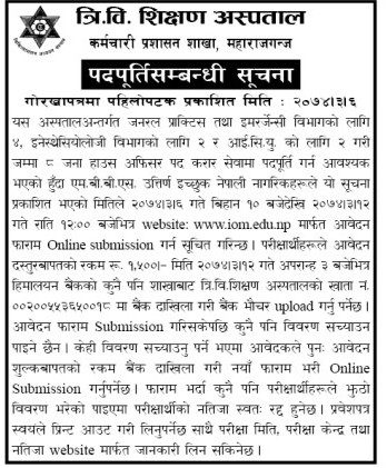 १७ जना नर्स, ८ जना मेडिकल अधिकृत सहित ३० जना स्वास्थयकर्मीका लागि दरखास्त आवहान गरेको छ । संस्थाले योग्यता पुगेका इच्छुक नेपाली नागरिकले २९...